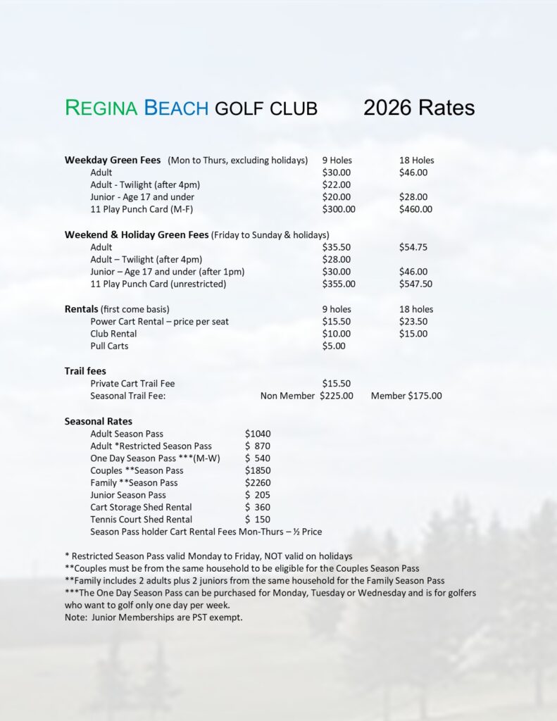 © 2026 Regina Beach Golf Club. All Rights Reserved.